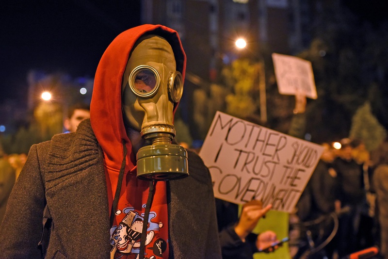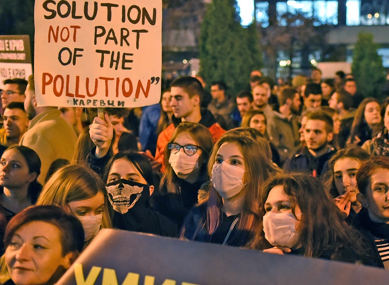 Ова се дел од слоганите на масовниот протест за чист воздух кој попладнево се одржа во Скопје. Предводени од младите, илјадници граѓани присуствуваа на протестниот марш за да го изразат својот револт. Тие се собраа пред Министерството за животна средина и просторно планирање и чекореа низ центарот на Скопје до Владата. Погледнете го протестот низ фотографии.