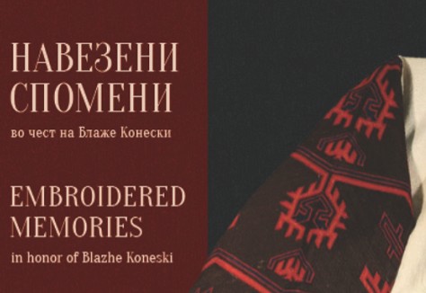 Составена од 53 најкарактеристични народни везови од различни етногеографски области на нашата земја, денеска во Музејот на Македонија ќе биде отворена изложбата „Навезени спомени“, поставена во чест на нашиот реномиран и меѓународно признат поет - Блаже Конески. Со отворањето на изложбата, Музејот дава свој придонес кон одбележувањето на 100-годишнината од раѓањето на втемелувачот на современата македонска филологија и лингвистика.
