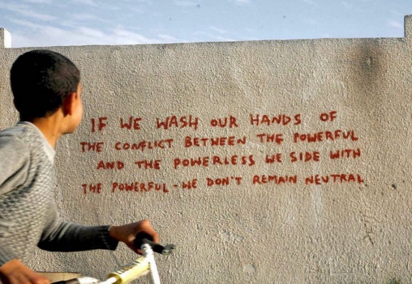 На само една слика, Бенкси успева да ја долови потресната реалност на Газа и да ја посипи со надеж и хумор: горчливо-сладок спој на уметност што нуди моментално бегство, истовремено повикувајќи нè да не заборавиме.