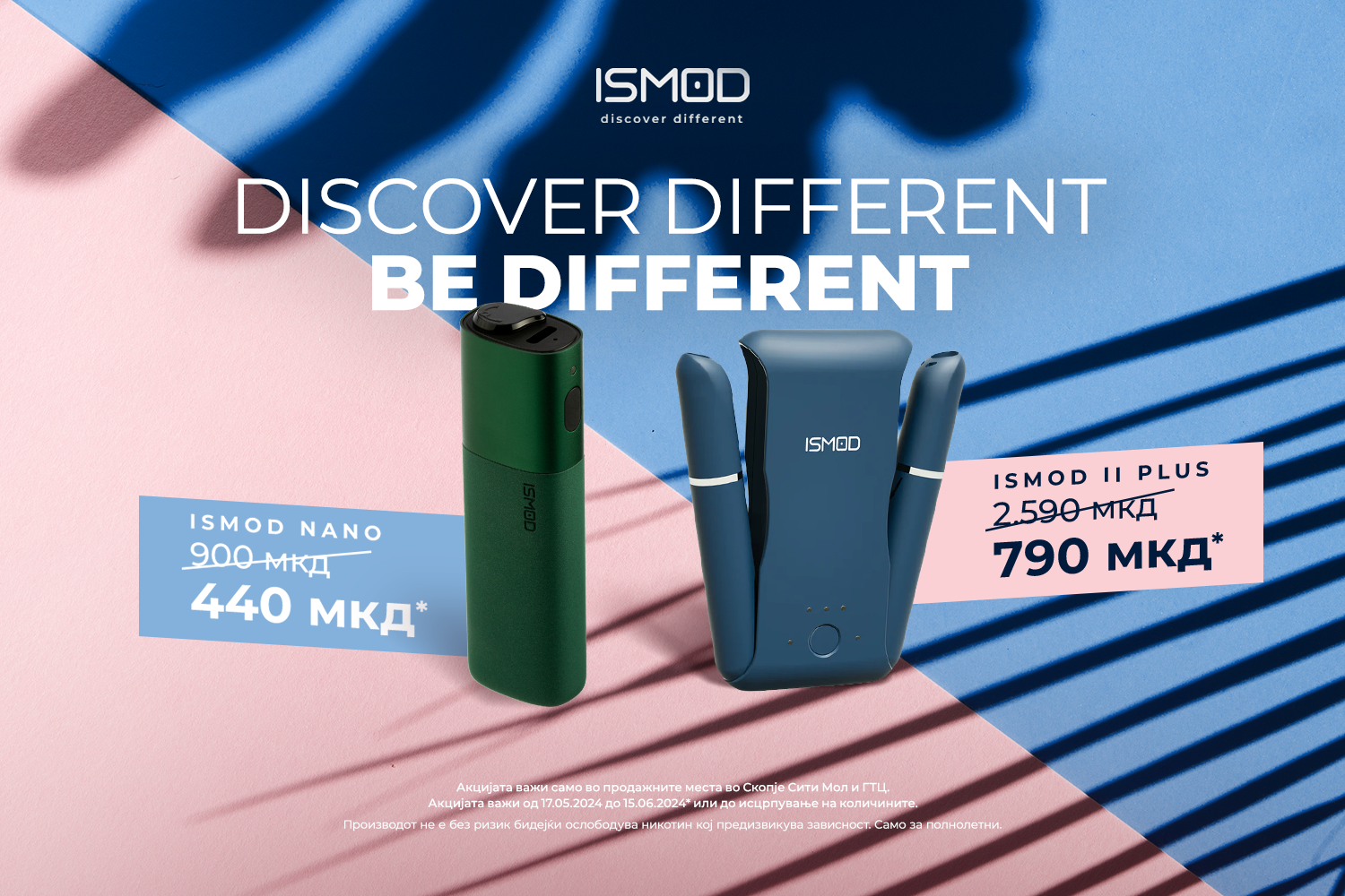 ISMOD со задоволство ви ја најавува новата промотивна акција „Discover Different with ISMOD - Be Different!“, која ви нуди неверојатни попусти на најпопуларните и најпродавани уреди ISMOD II Plus и ISMOD Nano.