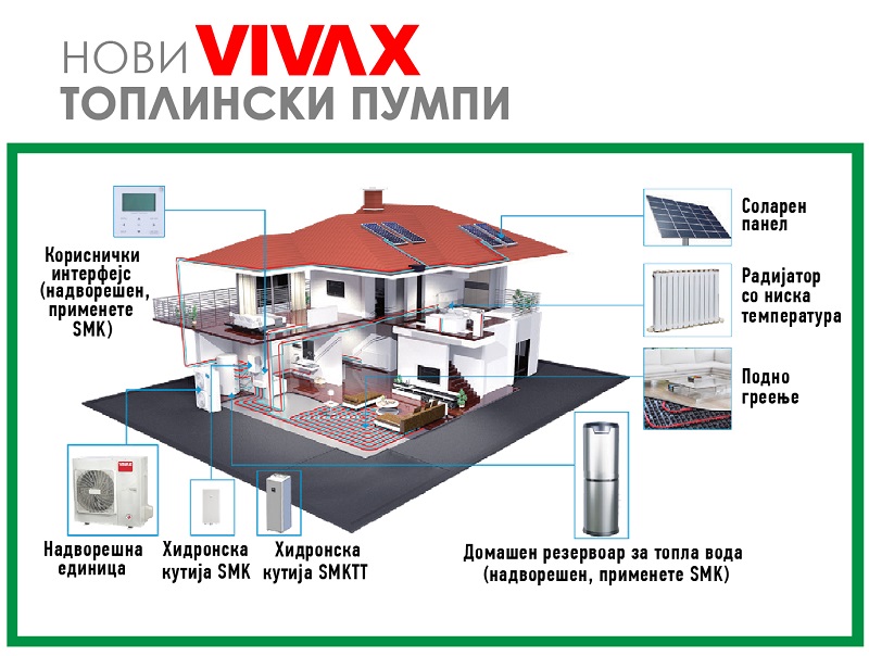 За пријатен престој во секој дом, на секое домаќинство му е потребен пријатен амбиент со соодветна температура, која може да се добие со новите топлински пумпи на VIVAX, кои имаат троен систем на работа, односно ладење, греење и топла вода, преку целата година. Предноста на топлинските пумпи е тоа што нивното работење може да се поврзи со многу апарати во домаќинството.