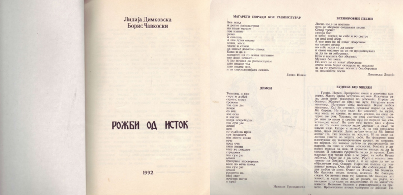 - Од едната страна беа моите песни, а од другата - неговите, и на средина се пресретнуваа. Со парите од наградата си ги купив приказните на Шехерезада што излегоа во „Детска радост“. Сега ѝ читам на ќерка ми од таа книга. Стихозбирката ја издадовме сами. Баравме спонзори, тропавме од врата на врата и сите ни помогнаа по малку. Тоа беа фирми и претпријатија што немаа никаква врска со книжевноста. Ни ја издаде „Киро Дандаро“, а за да стигнеме до Битола, секако, стопиравме. И на Струшки вечери исто така патувавме автостоп – се сеќава Лидија.