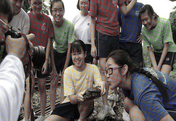 Tака, доколку вашиот прв впечаток беше дека маиците на децата се зелени, црвени, жолти, сини – не се. Ако ги занемариме квадратчињата во боја, се гледа дека тоа, како и лицата и сé друго на сликата е бело, црно и сиво.