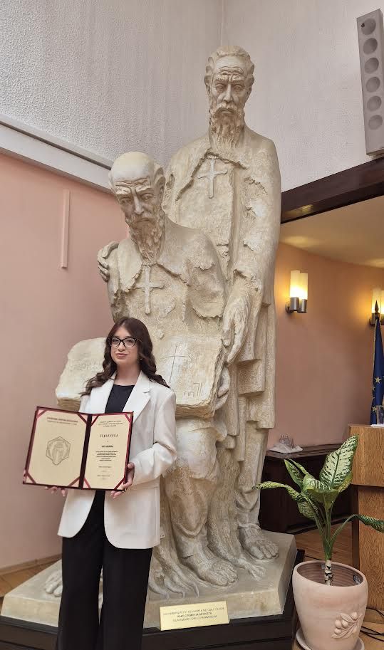 Од страна на Универзитетот беше прогласена за најдобар студент на овој факултет за академската 2023/2024 година. Дипломира на смерот Анимална биотехнологија и по звање е дипломиран земјоделски инженер.