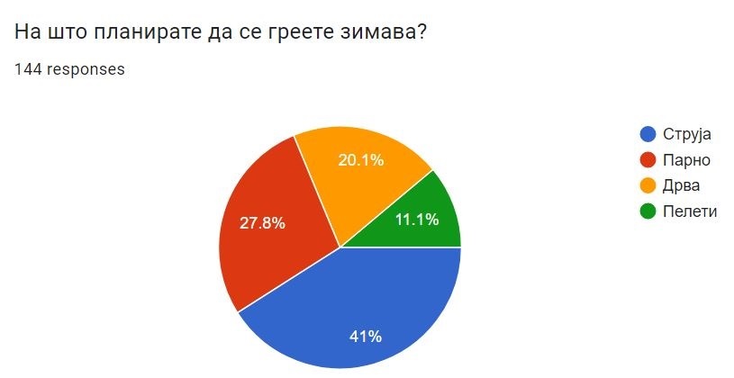 Вкупно 41% од испитаниците планираат да плаќаат поголеми сметки за струја за да се стоплат зимава, додека 27,8% ќе се греат на парно, 20,1% на дрва и 11,1% на пелети.