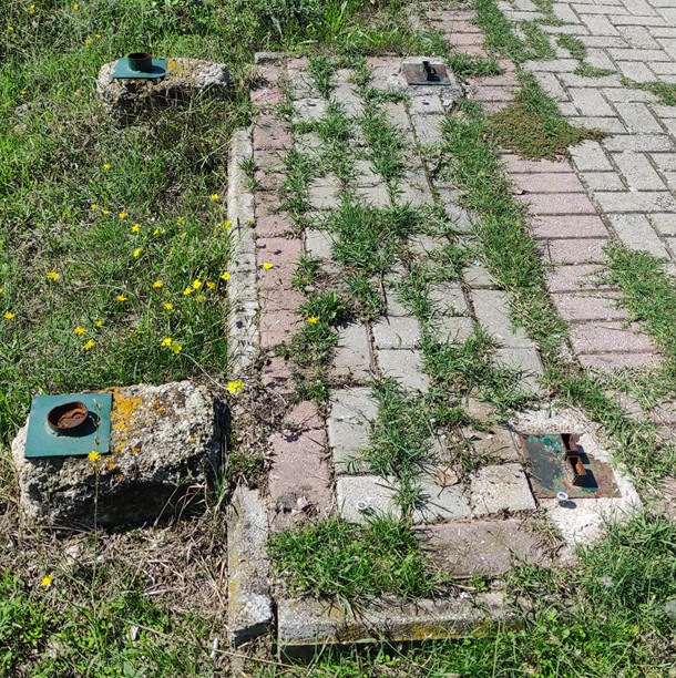 Не ми е јасна причината зошто овие клупи беа заменети со нови клупи пред околу една година. Бидејќи старите клупи беа здраво прицврстени за подлогата, извршителот на работите при замената не можел да ги откорне и затоа ги исекол металните ногарки (види слика). Новите клупи се прицврстени само со 4 обични шрафа за постојната бетонска подлога така што многу лесно можат да бидат одвртени. Тоа значи многу лесни за крадење. Од сликата се гледа дека нема траги дека тука биле монтирани нови клупи, а се гледаат само траги од старите клупи.