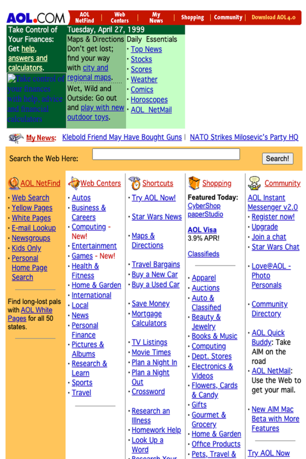 1999 година: „Believe“ на Шер беше популарна на радио, Бил Клинтон беше отповикан, а дајл-ап интернетот одекнуваше во семејните соби низ целиот свет. Интернетот тогаш сè уште беше млад - чуден, непријатен и болно бавен. Дот-ком сè уште растеше, додека оние што создаваа содржина на интернет честопати не знаеја што прават.
