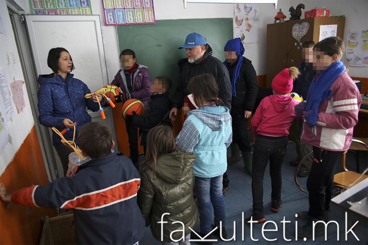 Децата, среќни и растрчани, растовараа донации од комбето и прашуваа дали сето тоа е за нив. Најмногу се израдуваа на топките, хулахопите, јажињата за скокање, со кои наставата по физичко ќе им биде позабавна.