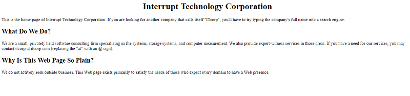 Оваа страница е жив интернет-фосил. Според некои извори, оваа страница била регистрирана на 18 септември 1986 година. Иако не би добила некоја награда за дизајн, староста и фактот дека сè уште е активна се шокантни.
