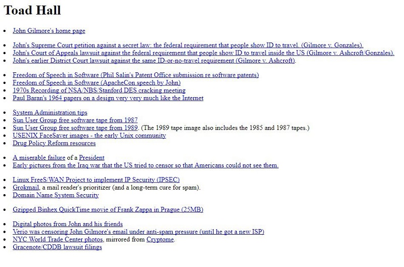 И ова е една од најстарите страници, која изгледа дека е посветена на колекција линкови поврзани со Џон Гилмор.