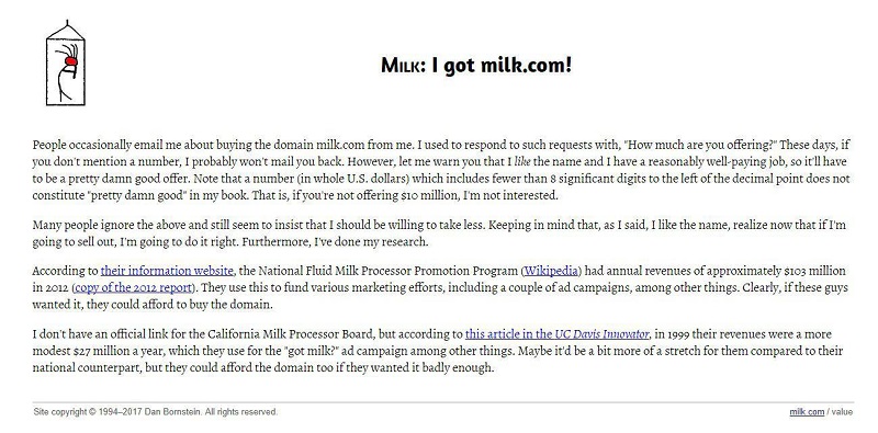 Регистрирана во 1994 година, оваа страница може да биде одличен пример за тоа што значи да се биде на вистинското место во вистинското време, но само ако биде продадена. Креаторот на страницата е расположен да ја продаде за 10 милиони долари.