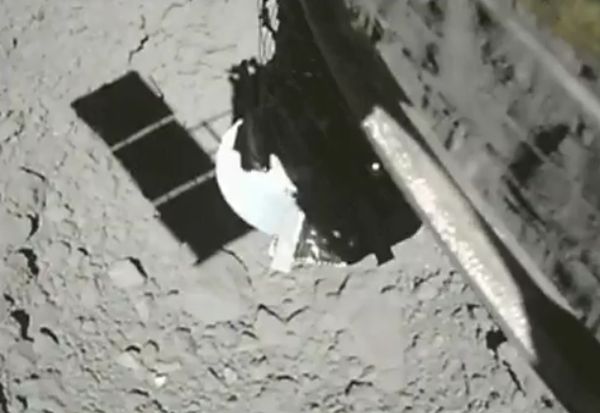 Јапонскиот вселенски брод „Хајабуса 2“ на 10 јули се врати на местото каде што го бомбардираше астероидот Риугу за да собере примероци камења. И сега Јапонскиот центар за вселенски истражувања објави снимка од историскиот настан.