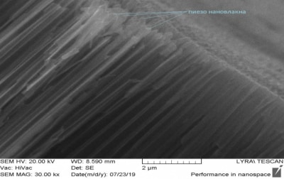 Микроскопска фотографија (изглед отстрана) на изградени пиезоелектрични нановлакна