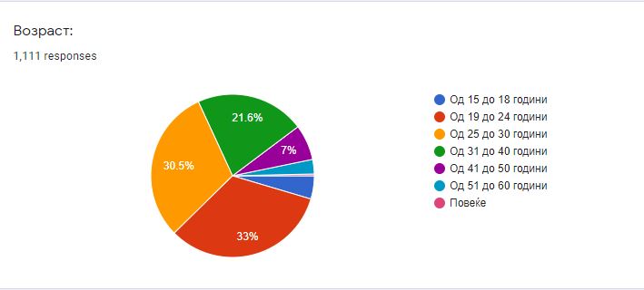Инаку, во анкетата учествуваа граѓани од сите возрасти, но најмногу одговараа младите, најчесто студенти од 19 до 24 години (со 33 отсто), потоа од 25 до 30 години (со 30,5 отсто), како и од 31 до 40 години (со 21,6 отсто), односно оној профил на граѓани што најчесто можат да се сретнат навечер во угостителските објекти. Во анкетата учествувале повеќе жени – 58,6 отсто.