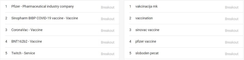 Во категоријата здравје годинава, очекувано, најгуглани се вакцините, како најпребарувани теми и термини, но се вмешале и медиумите.