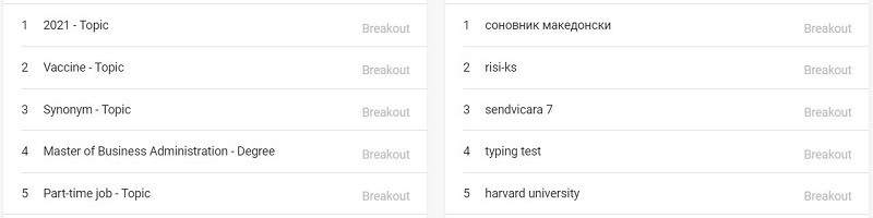 Подолу на листата се пребарувањата за цената на биткоинот, страници за резултати од спортски натпревари, е-дневник, пребарувања на лаборатории итн.
