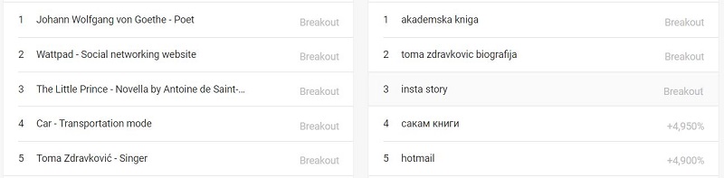 Во категоријата книги и литература може да се забележат пребарувања за „Малиот принц“, Тома Здравковиќ и други нешта.