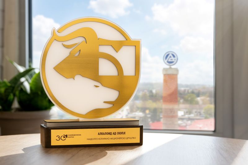 На јубилејната церемонија им беа врачени пригодни признанија на неколку субјекти поврзани со работењето на Берзата, меѓу кои и „Алкалоид“. Плакетата за најдолго котирано акционерско друштво во име на компанијата ја прими генералниот директор и претседател на УО на „Алкалоид“, Живко Мукаетов.