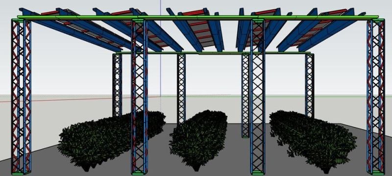 - Со цел добивање податоци за перформансите на системот во однос на електричната енергија, користен е софтверот PVsyst, во кој е направена симулација со дадените услови на избраната локација. За добивање 3Д-слика за тоа како би изгледал нашиот систем, го користевме софтверот Sketch up. По направената анализа се воочува дека и покрај тоа што произведената енергија на годишно ниво незначително се намалува во однос на класичната изведба на фотоволтаичен систем (поради тоа што има повеќе простор меѓу фотоволтаичните модули, со цел да продира повеќе светлина врз растенијата), со производството на земјоделските култури (кои доколку се малини, како во нашиов случај, имаат зголемување во производството бидејќи сенката од панелите влијае поволно врз нив) искористеноста на земјиштето е 185%, а тоа ја оправдува зголемената заинтересираност за нивна имплементација во иднина – ни објасни Милош Милошевиќ.