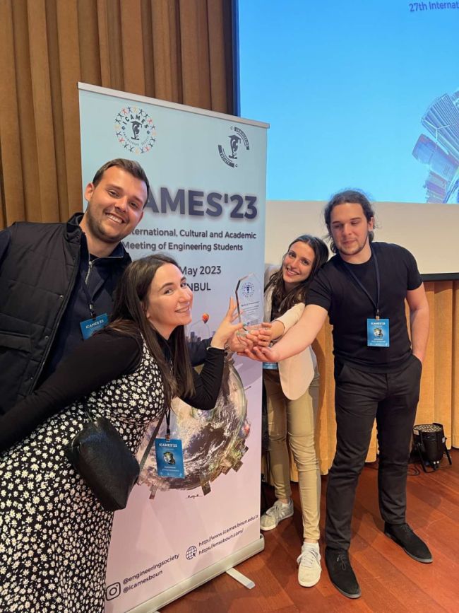 - Во периодот од втори до осми мај 2023 се одржа 27. издание на ICAMES (International Cultural and Academic Meeting of Engineering Students) Меѓународната културна и академска средба на студентите по технички науки, организирана од Друштвото на инженери од Универзитетот „Боазиџи“ во Истанбул, Турција. Овој настан претставува натпревар на инженерски проекти во кој се претставуваат проекти од сите инженерски дисциплини изработени од студенти на додипломски студии. За натпреварот дознавме од нашата професорка, доц. д-р Маја Целеска-Крстевска, која ја даде иницијативата за учество на ICAMES оваа година. Студентите на ФЕИТ редовно учествуваат на овој натпревар и ја продолжуваат повеќегодишната традиција на освојување награди на меѓународни натпревари - ни изјавија студентите.
