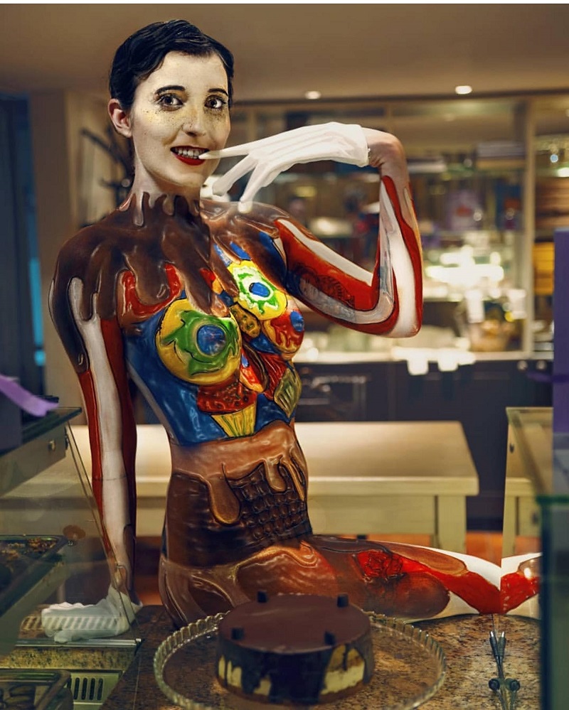 - Подготвувањето беше многу комплицирано и тешко, веројатно тој бодипејнт беше и најдолго работен поради тоа што самиот се сликав. Посебен предизвик беше да се насликам на грбот, кој сам го сликав до одреден дел, но, за жал, моите гимнастичарски способности не се развиени до тој степен, а потоа ми помогна другарка на која ѝ давав инструкции како и каде што да направи со помош на огледало. Ова искуство ме ослободи и ми даде друга перспектива на она што го работам. Да се доживеам себеси како дело ми даде друга слика како сакам да се гледаат и чувствуваат моите модели додека се насликани во мое дело - вели тој.