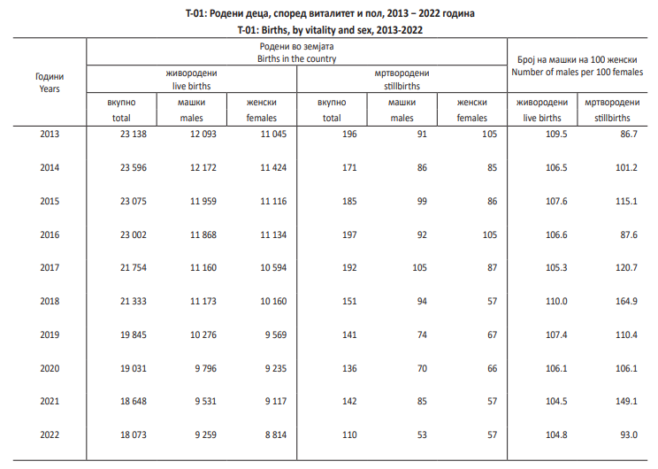 Податоците покажуваат дека ова е најмал број на родени деца во последните десет години, со тоа што во 2013 година биле регистрирани дури пет илјади живородени деца повеќе, односно 23.138. До 2016 година бројот на живородени деца во земјава се движи околу 23 илјади, но од 2017 година е во пад, за да стигнеме до ланските 18 илјади.