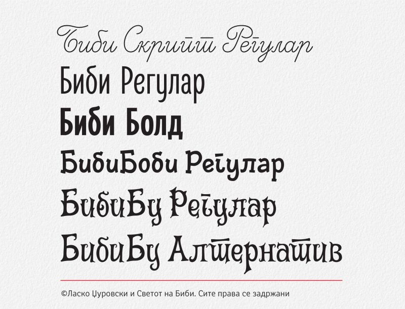 Македонскиот дизајнер и типограф Ласко Џуровски создаде шест оригинални македонски кирилични фонтови за „Светот на Биби“. Станува збор за „Биби регулар“ , „Биби скрипт регулар“, „Биби болд“, „Биби Боби Регулар“, „Биби скрипт“, „БибиБу регулар“ и „Биби Бу Алтернатив“. Фонтовите се креирани ексклузивно за „Светот на Биби“ и нивните проекти. Како што споделува Ласко, фонтовите се инспирирани од детското пишување, нормално, со акцент на правилните форми на буквите од македонската кирилица, приспособени за употреба на сите медиуми, пред сѐ, дигиталните. Целта на соработката меѓу Џуровски и „Светот на Биби“ е со употребата на овие фонтови во проектите на „Светот на Биби“ децата читајќи да се едуцираат како правилно се пишува со македонска кирилица.