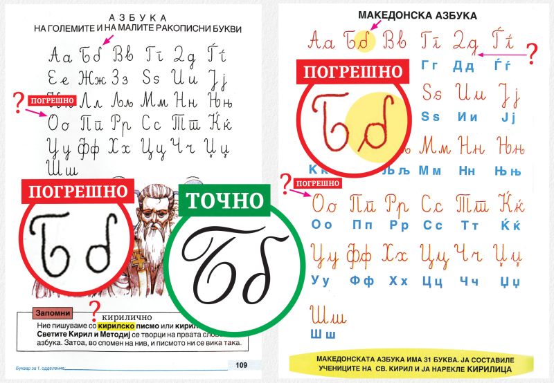 - Со секакви. Чест на исклучоците. Посериозните издавачи внимаваат на типографијата што ја користат во нивните изданија, што е за поздравување, но постојат и многу лоши примери за тоа кој третман го има македонската кирилица во некои изданија (видете ја илустрацијата со примерот за малата буква „б“). Јас предлагам едноставно решение, сите изданија да бидат прегледани и одобрени пред печатење од лектор кој ќе сноси одговорност за својата работа, професионалец кој ја познава типографијата, а особено македонската кирилица и ја гледа со респект кој таа го заслужува.