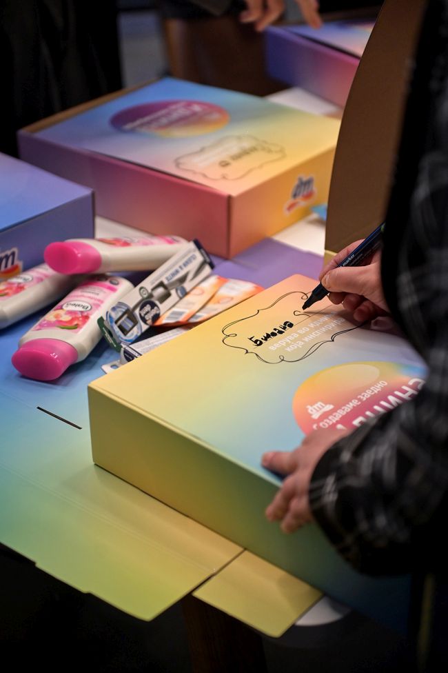 Во рамките на настанот повеќе од 100 новинари, инфлуенсери, соработници, волонтери и претставници на организации учествуваа во волонтерска акција за подготовка и пакување на пакети со dm производи, наменети за Кризниот центар „Надеж“ и Националната мрежа против насилство врз жени и семејно насилство.