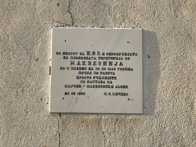 - Татко ми кажуваше дека училиштето постоело и пред војната, но во него се учело на српски јазик бидејќи пред војната сме биле во составот на кралството Југославија. На првиот ден при почнувањето на мајчин македонски јазик, учителот Василко Ристески им рекол: „Деца, отсега натаму ќе си учите на вашиот мајчин македонски јазик, и нема веќе да се презивате на -иќ, туку на -ски.“ За татко ми и сите негови соученици, било возбудливо што секојдневното поздравување ќе си биде со „добро утро“ и „добар ден“, а не како порано на туѓ јазик. Можеби тоа денес изгледа смешно, но можноста да се учи на мајчин јазик била огромна радост. Исто така, татко ми се сеќава дека при влегувањето на учителот во училница, тој поздравувал со: „Смрт на фашизмот“, а децата одговарале: „Слобода на народот“.
