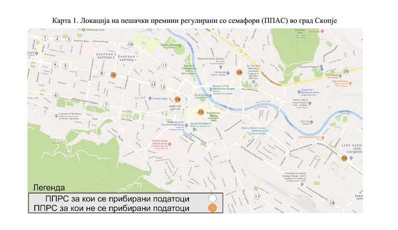 Во Скопје има 20 пешачки премини со автоматски семафори, а тие прибирале податоци од 15. Броеле непотребно застанување на возила кога нема пешаци што треба да ја преминат улицата, во сеанси од по 60 минути.