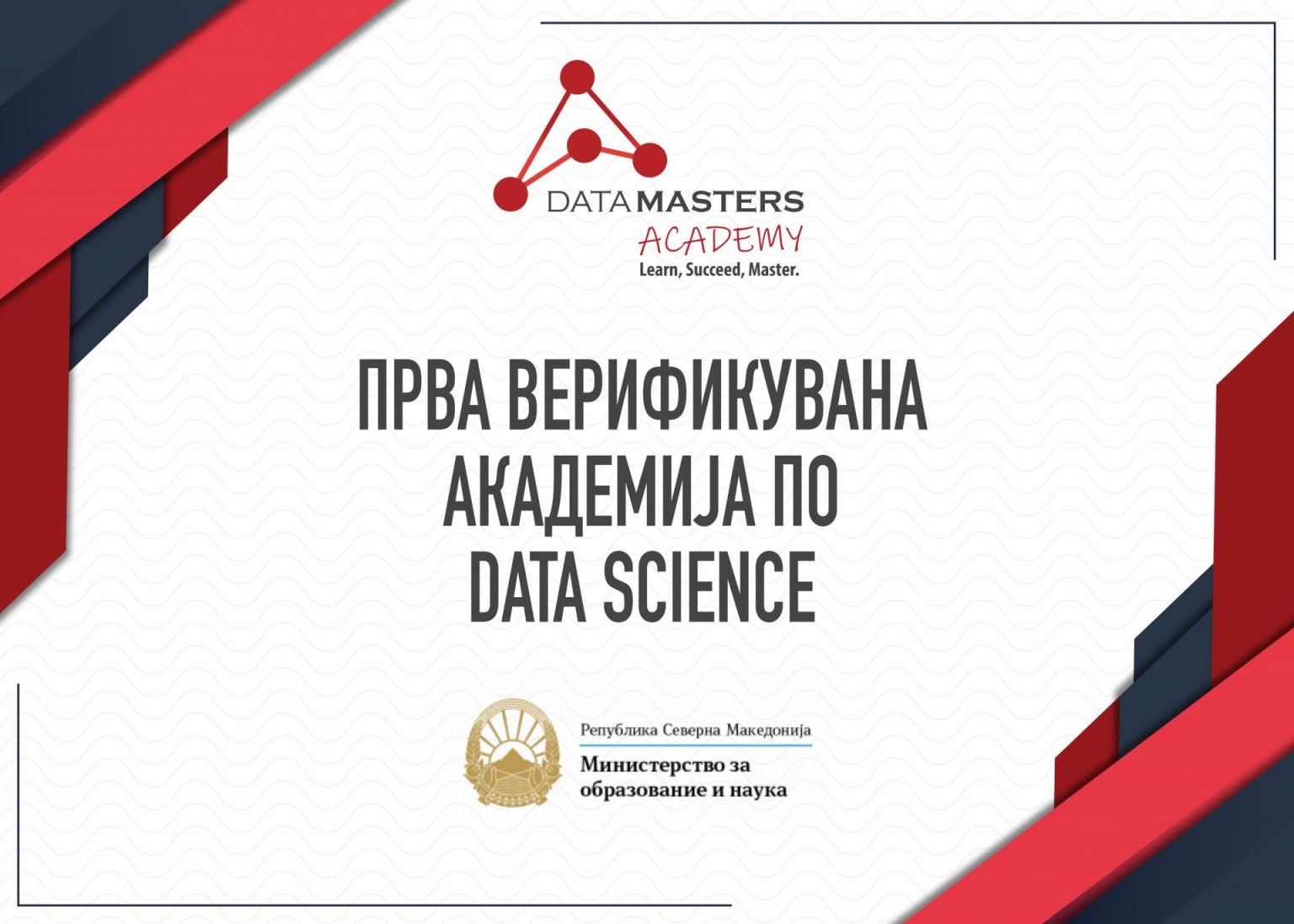 Денес Академијата за Data Science се здоби со државно признаен сертификат издаден од Министерството за образование и наука. Академијата на Data Masters е првата и единствена акредитирана во доменот на Data Science во Македонија.