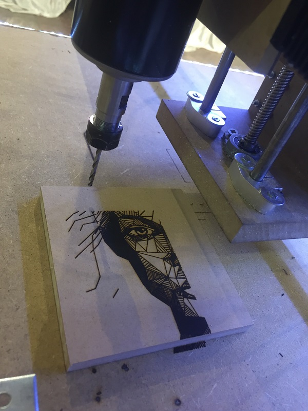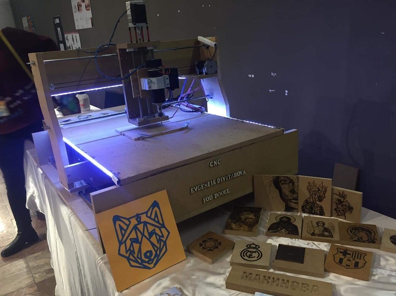 - Годинава се претставив со CNC-машина (Computer Numerical Control), која е со две функции и која му ја олеснува работата на човекот. За извeдување на целиот процес е потребен само еден човек. Машината е многу прецизна, тоа можe да се забележи во изработките што ги имав направено за презентирање пред комисијата. На пример, на копаничарите ако им се потребни неколку дена или недели да направат некоја слика, со оваа машина ќе можат тоа да го сторат за неколку часа или за неколку дена. Притоа машината може да работи без престан дури и по неколку дена, а обично знаеме дека просечен човек може да работи континуирано од 6 до 8 часа, но машината може повеќе, а целата слика би била многу прецизна и би се изразиле повеќе ситните делови кои човекот не може да ги изработи до таа мера. Тоа особено може да се види при гравирањето фотографии - објаснува Евгенија.