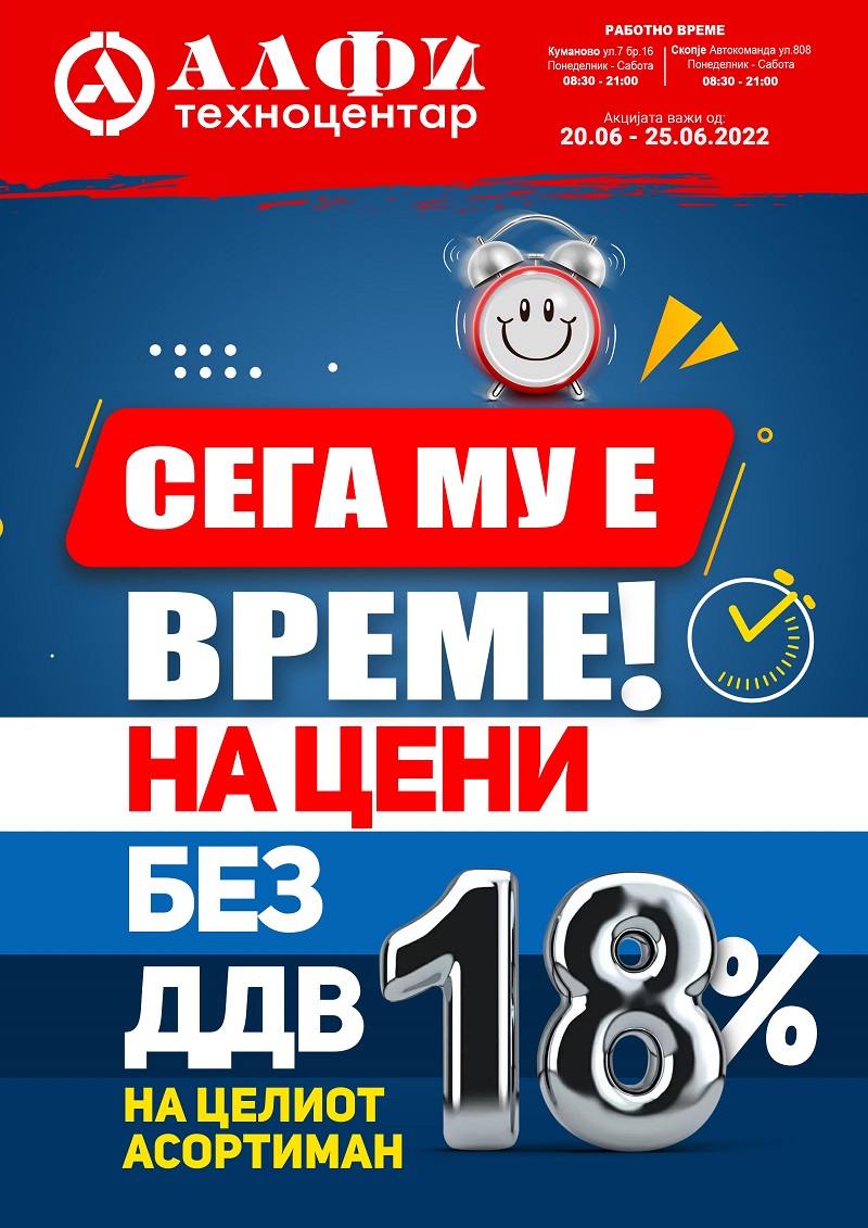 Голем хепенинг во Алфи техноцентар „Сега му е време на цени без ДДВ“ со клуб-попусти од - 15,6% на целиот асортиман, на огромно задоволство на граѓаните со цел да уживаат во ова шопинг-искуство со неодоливо ниски клуб-цени!