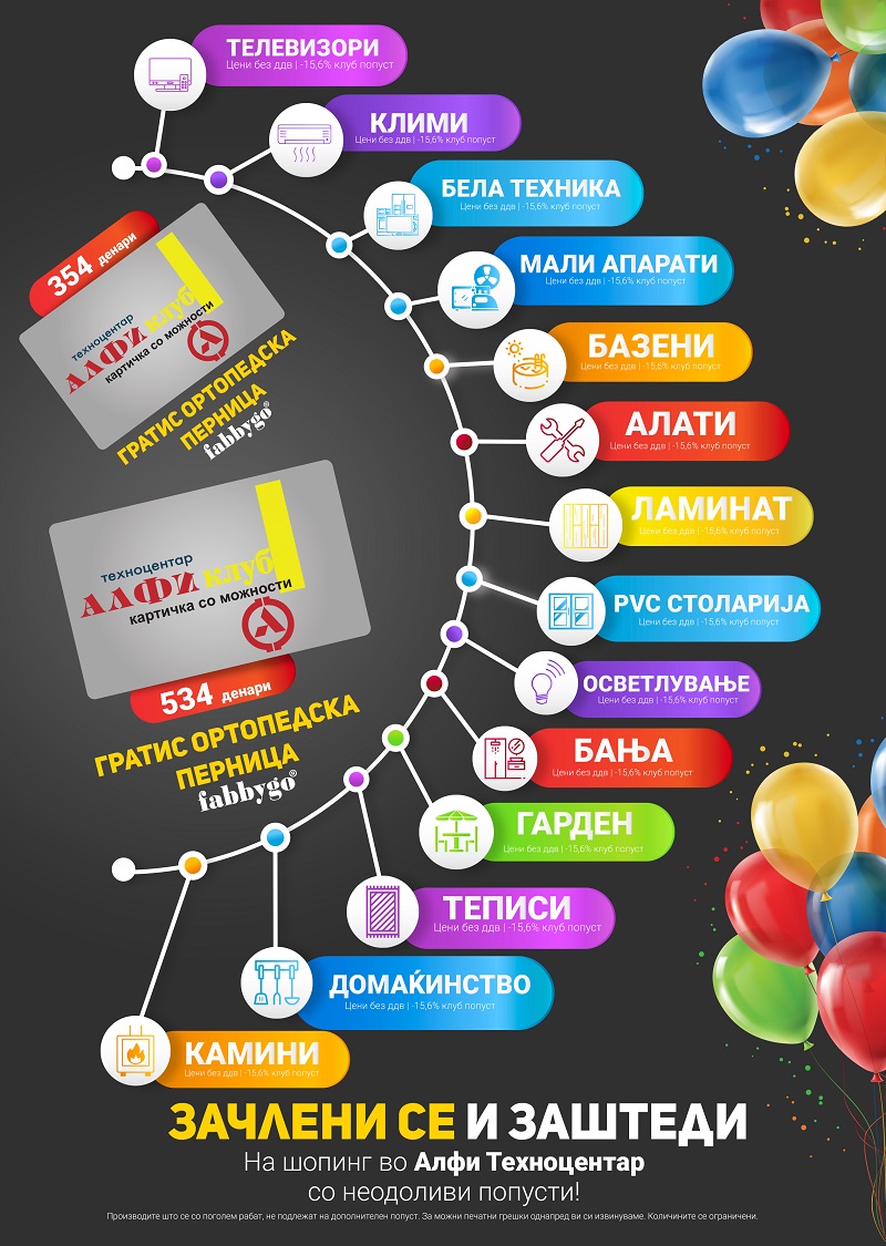 - Со овој настан сакаме да им овозможиме на граѓаните да се препуштат на незаборавна шопинг-авантура со неодоливо ниски клуб-цени во која максимално ќе уживаат затоа што задоволството на нашите купувачи е нашата цел и мотивација - изјави Анета Ангеловска, маркетинг-менаџер на Алфи техноцентар заедно со својот маркетинг-тим.