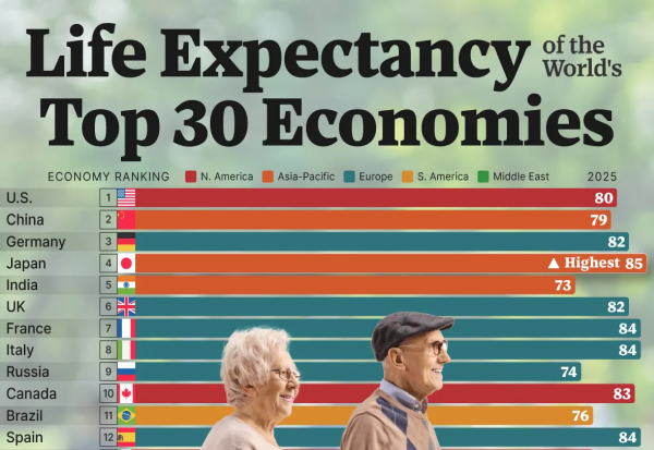 Во Јапонија, четвртата најголема економија во светот, луѓето во просек живеат пет години подолго. Во меѓувреме, жителите на земји како Франција и Италија имаат приближно четири години поголем животен век од Американците.