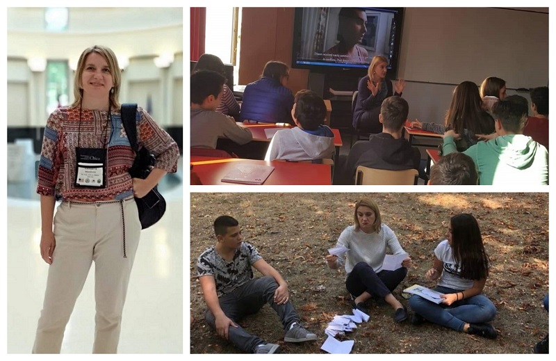 Проф. Ќупева со своите ученици во гимназијата „Орце Николов“