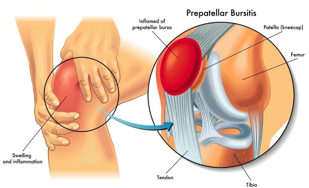 Постојат четири бурзи лоцирани околу зглобот на коленото. Сите тие се речиси еднакво склони кон појава на воспаление. Сепак, најчесто е зафатена бурзата помеѓу кожата и капачето на коленото (препателарната бурса).