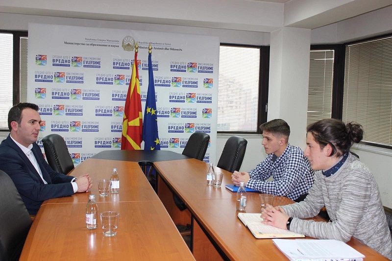 Последниот министер за образование и наука Арбер Адеми со претставници на Сојузот на средношколците