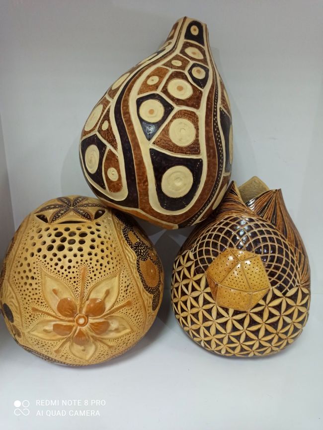 - Секоја лејка е посебна приказна, но подготовката за сите е иста. Претходно мора материјалот да се подготви и да се извади кората. Мора да се стигне до мазната површина и да се исчисти внатрешната површина. Кога ќе ја разгледам формата, одлучувам што би можело да се нацрта. Потоа ја исцртувам со молив, па следува горење со пирографот. Со него се добиваат нијансите на кафена и црна боја.
