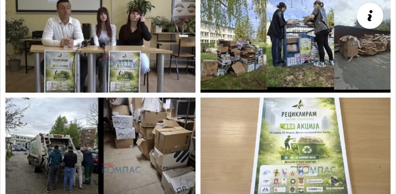 Во рамките на екоакцијата „Рециклирам значи постојам“, заедно со своите врсници од СОУ „Ристе Ристески – Ричко“ и СОУ „Таки Даскало“ – Битола, испратија јасна и гласна порака: Иднината не ја чекаме, иднината ја создаваме. Нивната заложба е видлива во секој нивен чекор, од осмислување иновативни дизајни и екопораки до активно учество во акции за селекција и рециклирање отпад.