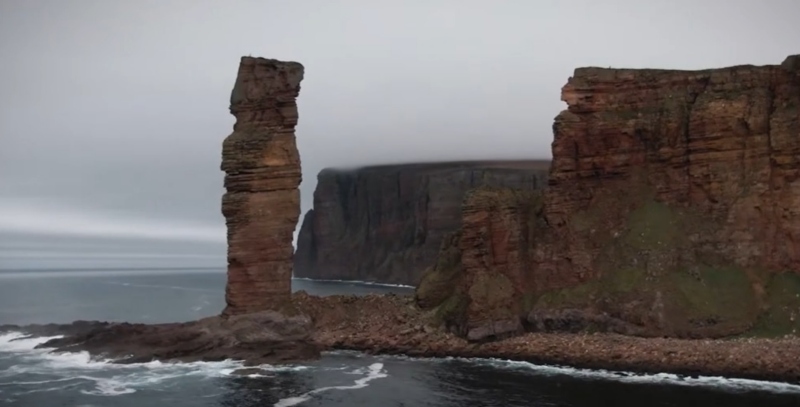 Едно од најимпресивните обележја се наоѓа покрај брегот на островот Хој и многумина ќе се согласат дека е една од најголемите природни знаменитости во цела Велика Британија. Тоа е морска карпа широка 30, а висока 137 метри што се издига од морето како необичен оџак. Се нарекува „Старецот од Хој“ и е одделена од островот со бездна широка 60 метри, која постепено се полни со камења што паѓаат од „Старецот“ со текот на времето.