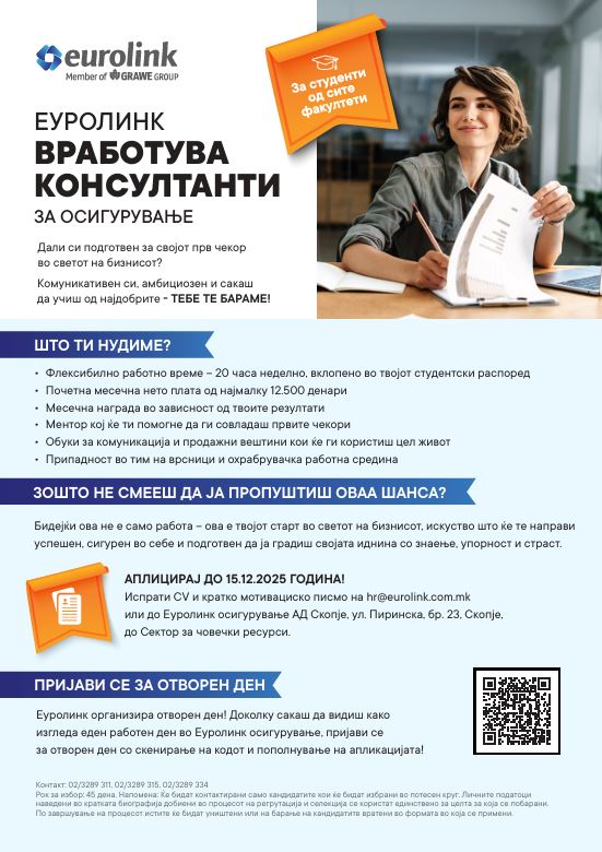 АПЛИЦИРАЈ НА hr@eurolink.com.mk