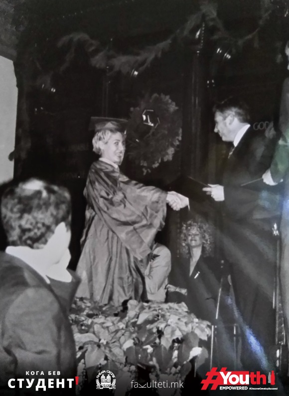 о првата година кога се подготовував за првата филмска вежба, не бев никако во состојба да го завршам сценариото за краток филм. Тогаш проф.Фрумин ми кажа: „Ако не го завршиш сценариото во следните два дена, твоето место не е тука“. Тој викенд седнав и го напишав моето прво вистинско сценарио и оттогаш не запрeв – вели нашата режисерка во рубриката „Кога бев студент“, што Факултети.мк ја реализира заедно со „Пивара Скопје“